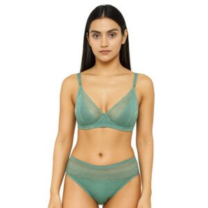 College Girl Light Padded Non-Wired Full Coverage ‘B’ Cup, Mid Waist Panty Tactel Cool Technology Antimicrobial Lingerie Set Multicolor